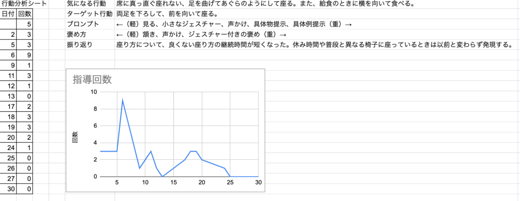 実施していく中で、「ターゲット行動」の回数や、気になったことは逐一メモしていきましょう。